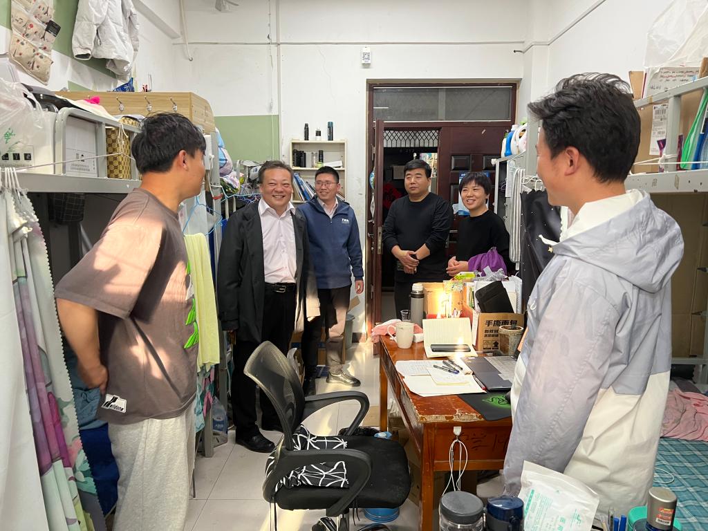 在教研室、实验室、研究中心、实践基地等场所,各位领导详细了解了日常工作运行情况,对安全设施、安全措施落实情况进行检查督导,并对节假日期间坚守岗位、坚持在科研一线的师生致以节日的问候。在学生宿舍,各位领导详细询问毕业生考研、毕业设计和论文、就业等方面的情况,与低年级同学就学习生活进行亲切交流,叮嘱大家注意用电安全、用水安全和外出交通安全。