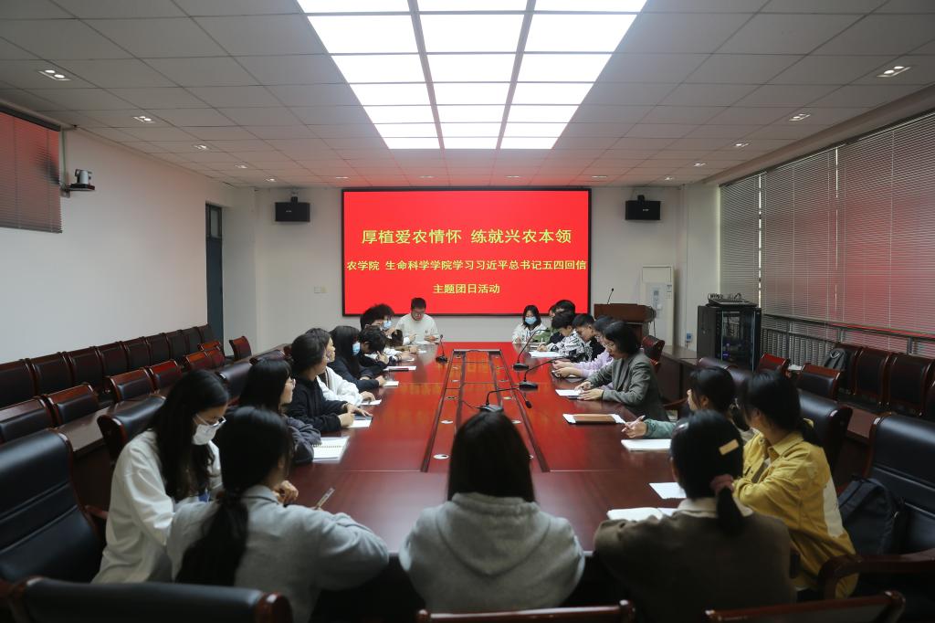 5月4日上午,农学院、生命科学学院在12号教学楼708会议室以“厚植爱农情怀 练就兴农本领”为主题,开展五四青年节主题团日活动,学习习近平总书记给中国农业大学科技小院的学生的回信。学院团委全体教师和三十多名团员代表参加活动。