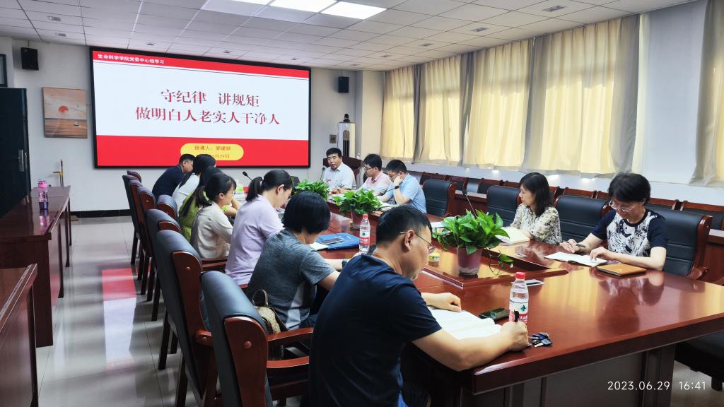按照校纪委要求,6月29日下午,生命科学学院党委书记郭建勋在12号楼515会议室讲授纪法专题党课。学院党政班子成员、科级干部、党支部书记和委员参加学习。
