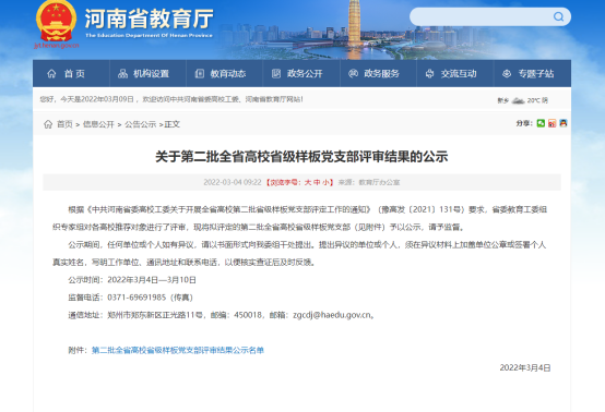 近日,中共河南省委高校工委公布了全省高校第二批省级样板党支部创建工作评审结果。经过支部自评申报、基层党委推荐、上级党组织审核评选,我院小麦研究中心党支部成功入选河南省党建样板党支部。