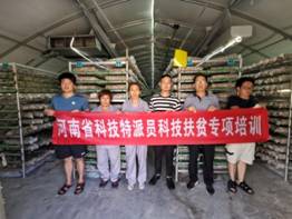 7月17~21日,我省出现大范围强降雨,造成了农业生产不同程度受灾,我省食用菌产业也遭受重创。洪灾无情人有情,以我校生命科技学院食用菌研发团队技术骨干组成的河南省食用菌产业科技特派员服务团闻“汛”而动,迅速与舞阳县、辉县、获嘉县等食用菌基地联系,克服我校存在的积水严重、断水断电的困难,积极开展救灾复产科技服务活动,第一时间了解受灾情况,编写指导抗灾自救宣传材料,建立食用菌产业灾后恢复生产技术交流群,深入基地考察灾情,现场指导生产自救,为生产恢复建言献策,践行科技特派员的使命和担当。