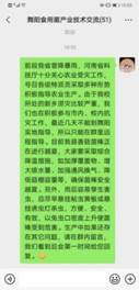 微信已成为现代交流讯息最快捷方便的通讯方式之一。因此,服务团第一时间就和舞阳县相关部门一起,建立舞阳县食用菌技术交流群和河南科技学院食用菌技术交流群,在群内传达省科技厅“关于组织全省科技特派员开展救灾复产科技服务活动的通知”,调查各地菇农具体受灾情况。从反馈的信息得知,新乡市所属的两大食用菌基地都遭受不同程度的损失,其中辉县市冀屯镇的平菇、毛木耳生产和常村镇的香菇生产都有较大损失,获嘉县中和镇和城关镇的香菇生产损失也较严重。突出问题是菌袋被大水浸泡,根据这些灾情特点,服务团迅速组织编写了“暴雨过后,食用菌基地怎么办?”的指导材料,并迅速在微信群内扩散,远程指导各地开展生产自救。