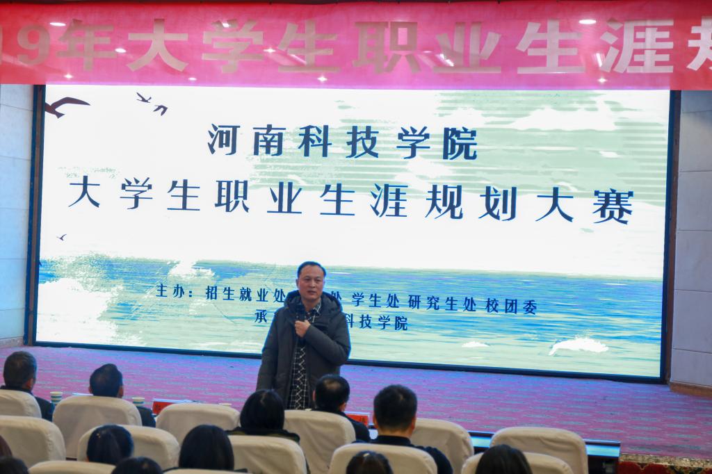 1月2日,由招生就业处、教务处、学生处、研究生处、校团委主办,生命科技学院承办的“河南科技学院2019年大学生职业生涯规划大赛”决赛在图教201报告厅圆满举行。招生就业处处长巴新华、招生就业处副处长李刚、教务处副处长古月声、党委学工部副部长学生处副处长郭超杰、党委研工部副部长研究生处副处长董华明、校团委副书记袁博、后勤服务中心副主任胡付广应邀出席并担任评委。