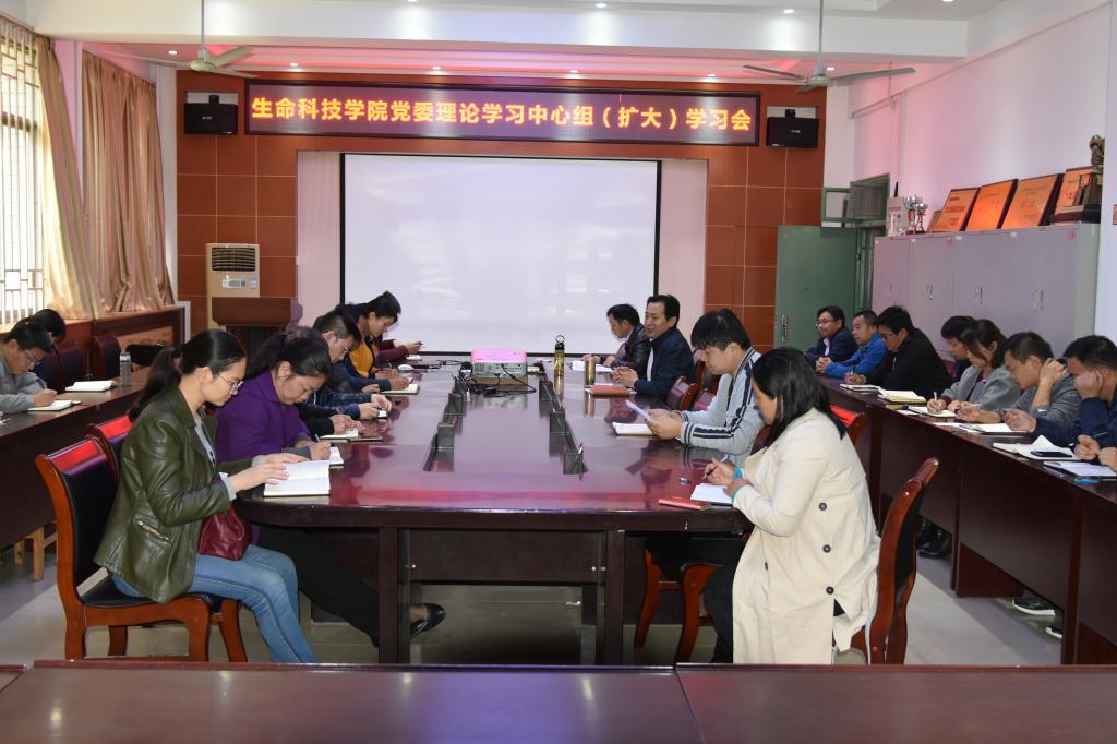 10月25日上午,在学院会议室召开中心组(扩大)学习会议,班子成员、党支部书记、科级以上干部参加会议。