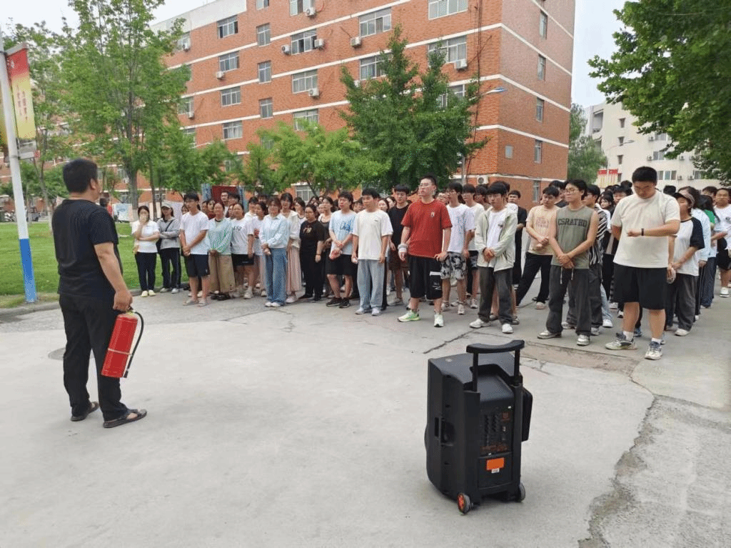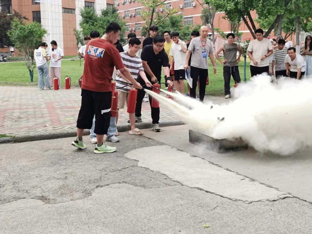 本次消防演练分别在学校5号宿舍楼下、12号教学楼前举行。演练现场,保卫处消防管理科老师向学生讲授了如何正确自救逃生、如何使用干粉灭火器和消防栓等基本消防安全知识。随后,组织全体参训学生进行了沉浸式灭火体验和应急疏散逃生演练,以提升学生应对火灾的实战能力。