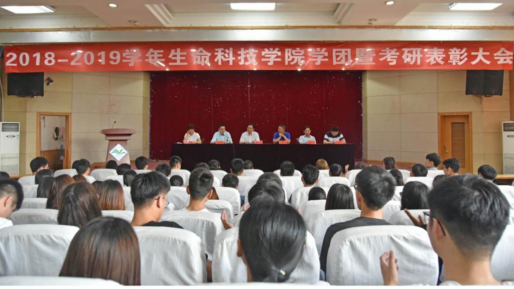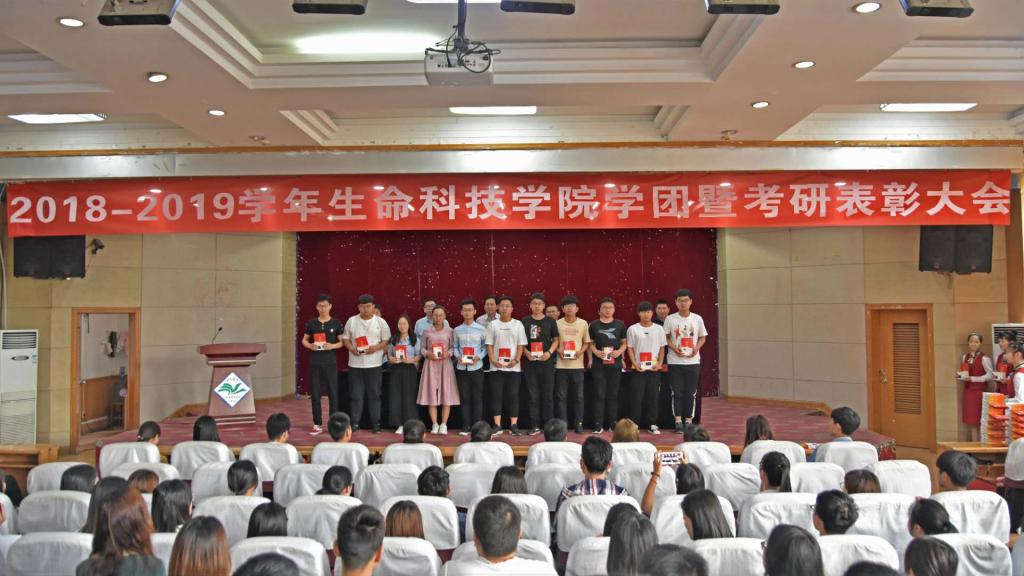大会在校歌中拉开帷幕。副院长黄中文宣读《2018-2019学年生命科技学院获得省级以上荣誉学生名单》、副院长胡海燕宣读《生命科技学院关于授予马誉菲等105名同学“学习标兵”荣誉称号的决定》,学院领导为105名考取硕士研究生的“学习标兵”颁发荣誉证书和奖品。随后,“学习标兵”代表生科151班梁静发言,分享了自己的考研经验。
