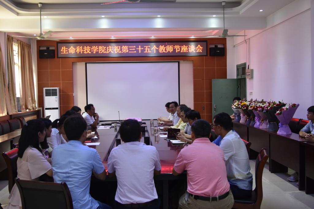 为庆祝第35个教师节的来临,9月9日上午,我院在E110会议室举行教师节座谈会。学院党政班子成员、教师代表和部分学生代表参加了座谈会,会议由院党委书记余鹏主持。