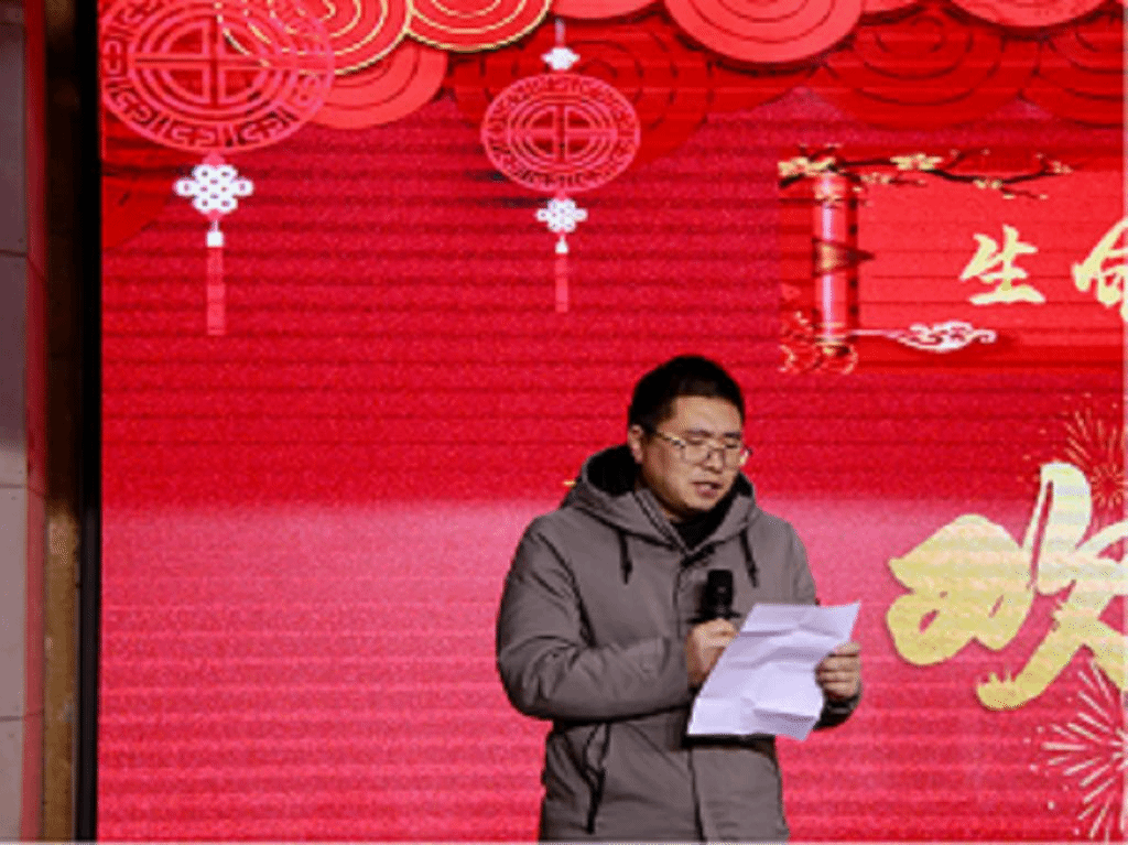 在欢快的音乐声中,执行院长杨天佑致辞。他通报了学院一年来取得的成绩,对广大师生一年来的辛勤付出表示感谢,并为大家送上新年的祝福。