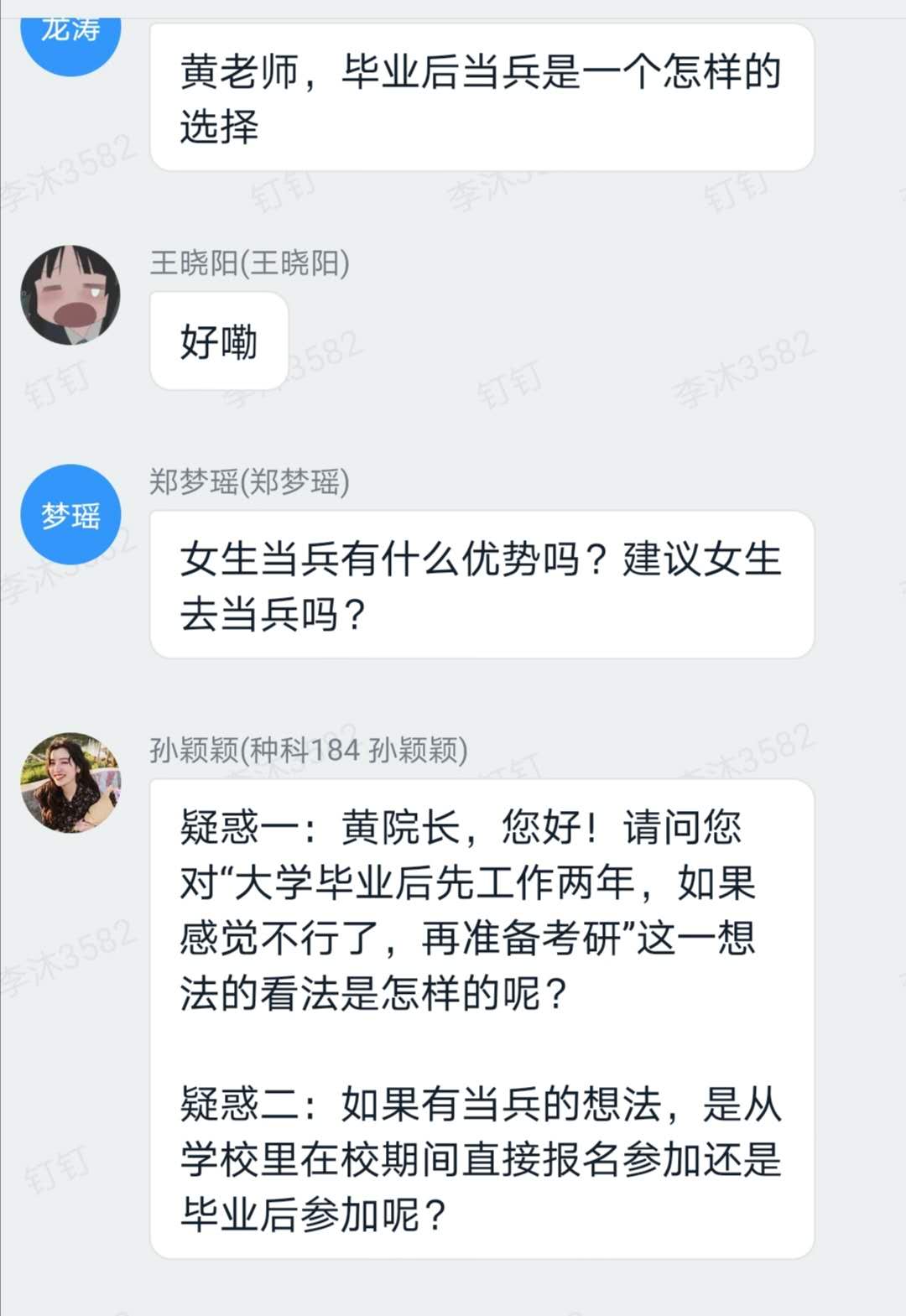 副院长黄中文围绕学业规划、正确认识考研等问题进行讲解,在谈到大学期间如何正确对待学习时,他强调同学们要做到三点:一是养成良好的作息习惯;二是每门课程都要认真听老师的课堂讲述;三是认真完成老师布置的任务,力争做到成绩优秀。随后是互动环节,同学们就学习、考研、职业选择与人生规划等问题与黄院长进行了交流和讨论,最后辅导员李沐老师就同学们在疫情防控、学习等方面取得的成绩和存在的问题进行了分析和总结,并对同学们未来学业规划提出了自己的良好建议。活动过程中,同学们积极参与,互动达600余次,获得了“5W+”的点赞。