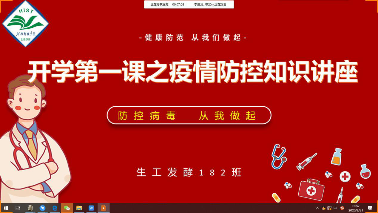 为加强学生疫情防控意识,提高自我预防、自我保护、自我应对能力,维护校园安全稳定,按照学校《2020年秋季学期“开学第一课”实施方案》安排,8月31日下午,生命科技学院组织学生以班级为单位,利用钉钉、QQ等平台召开返校复学“云班会”暨主题团日活动。