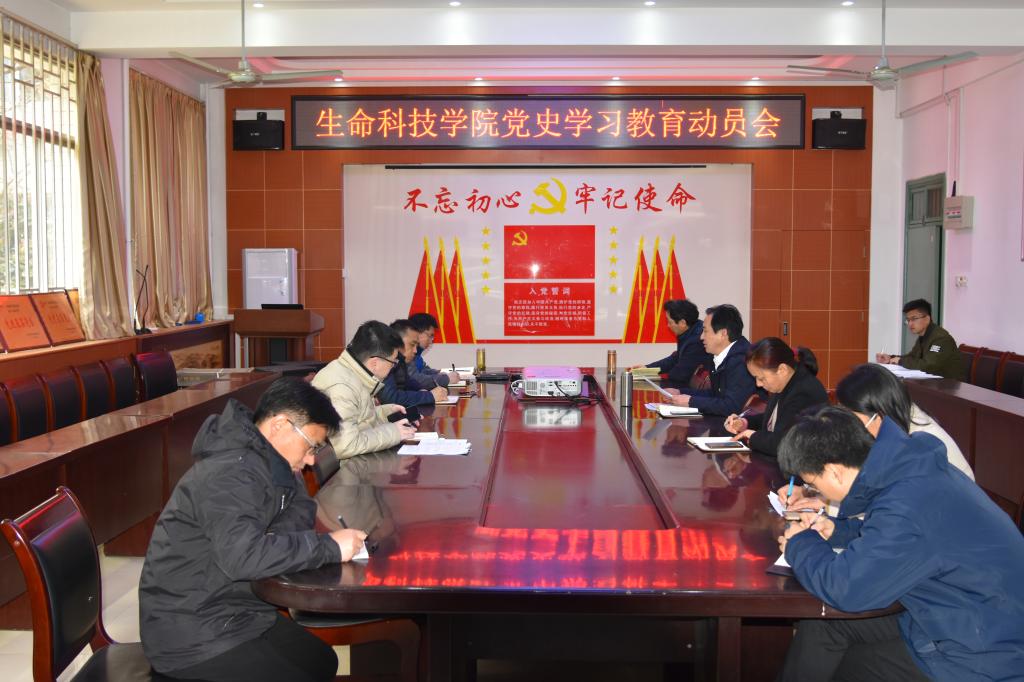 为扎实有序开展党史学习教育,根据《关于印发<河南科技学院党史学习教育工作方案>的通知》,3月19日,生命科技学院在实验楼E段110会议室召开党史学习教育动员会。学院党政班子成员、各支部书记参加会议。