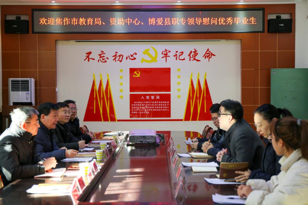 12月31日上午,焦作市教育局副局长井元锋、资助管理中心主任张海峰,博爱县职专校长王乃念等一行七人来我校看望慰问博爱县职专优秀毕业生,并在生命科技学院会议室召开座谈会。我校党委学工部副部长、学生处副处长陈利,生命科技学院党委副书记任贯中,副院长杨天佑,以及受慰问的学生和辅导员老师参加座谈。