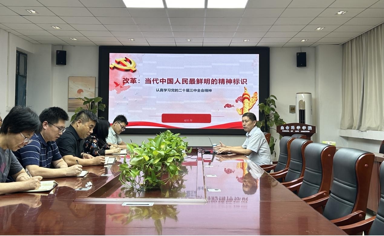 8月29日上午,生命科学学院在学院会议室召开党委理论学习中心组党的二十届三中全会精神专题学习会,邀请校党委办公室、党委督查室主任赵长春围绕党的二十届三中全会精神作专题报告。学院党委中心组成员、支部书记及科级以上干部参加会议。