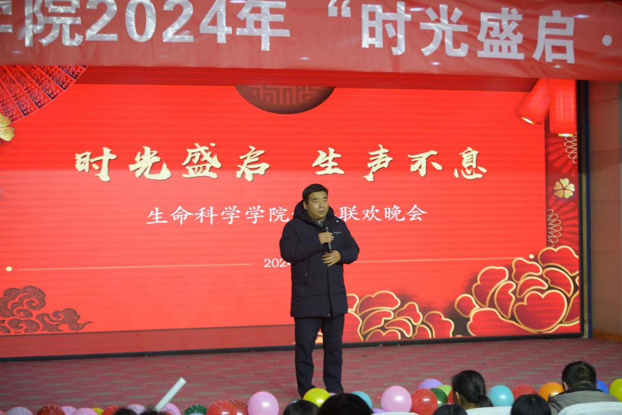 1月2日晚,生命科学学院在图教201举办“时光盛启,生声不息”2024年新年晚会。学院党委书记郭建勋、执行院长杨天佑、党委副书记邵帅、副院长张明霞、副院长李志刚及学院师生代表观看晚会。