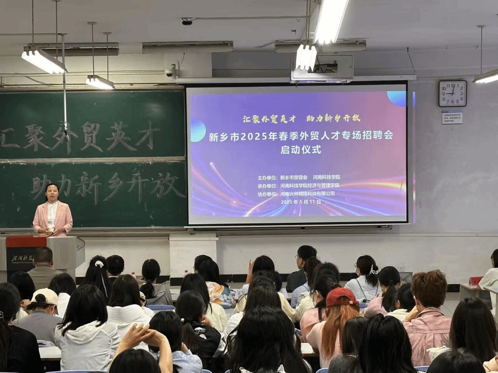 为进一步落实新乡市校企校地合作“十条措施”,围绕政策支持、环境优化、生态营造,持续推进科教资源、创新要素与企业需求精准对接和匹配,5月11日,由我校与新乡市贸促会联合主办的“2025 年新乡市春季外贸人才专场招聘会”在我校启智广场举行。35家我市重点外向型企业,400余名学生参加活动。