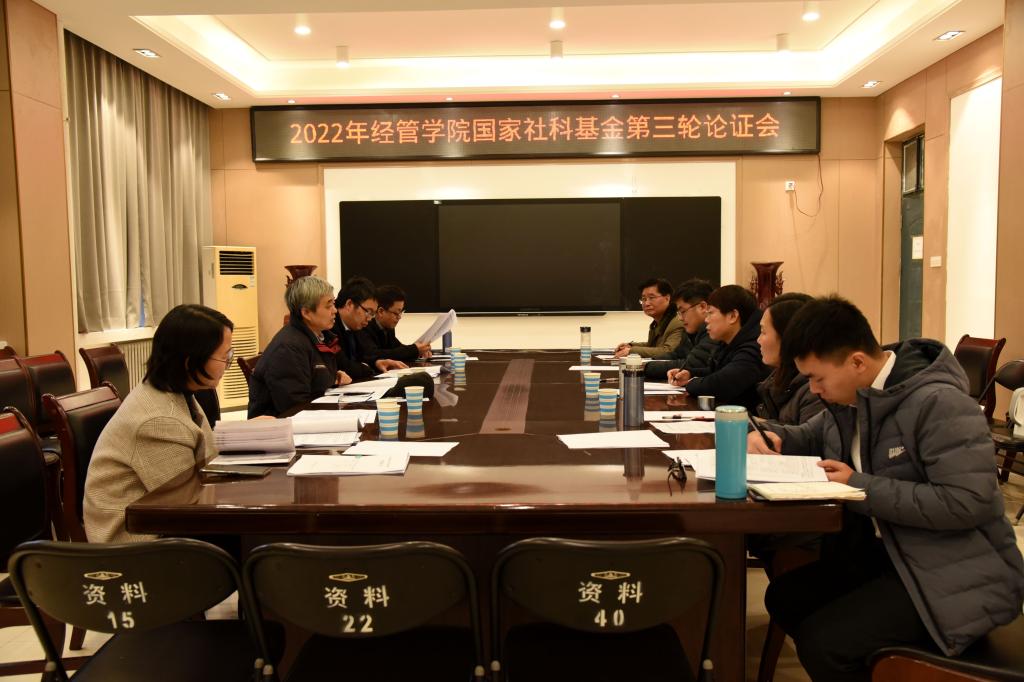 12月16日下午,经济与管理学院在10号楼202召开2022年国家社科基金第三轮论证会,受邀指导专家为河南师范大学原社科处处长刘怀光教授、商学院副院长海本禄教授、河南科技学院科技处副处长毕昱文博士、经管学院党委书记何二毛教授、办公室主任陈军民博士。经管学院副院长、科研秘书及2022年度国家社科基金申报人参与论证会。