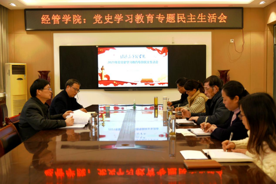 会前,经管学院党委切实按照学校《关于认真开好2021年度党史学习教育专题民主生活会的通知》有关要求,聚焦民主生活会主题,认真开展学习研讨、谈心交流,广泛征求意见建议,深入查摆剖析问题,撰写对照检查材料。