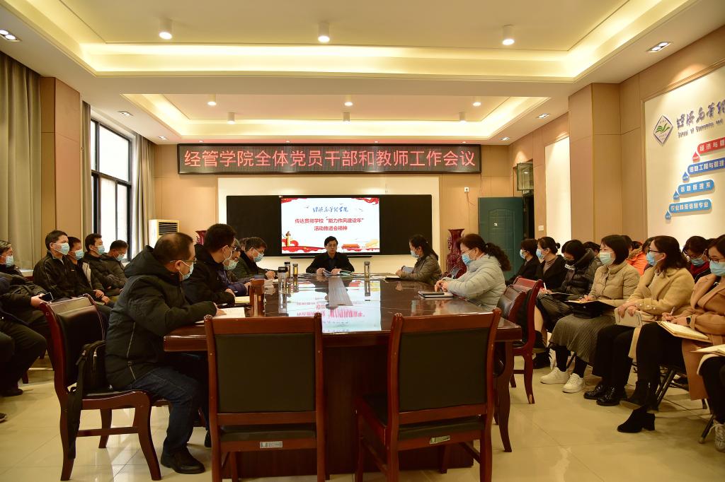 3月17日下午,经济与管理学院在10号楼202会议室召开“能力作风建设年”活动工作推进会,学院党政领导及全体教师参加会议,会议由院党委书记何二毛主持。