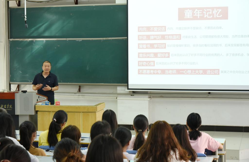 9月18日下午,经济与管理学院在十号楼合一教师举办优秀校友事迹报告会。学院2003届校友、河南点子汇文化传媒有限公司董事长张红凡应邀主讲。学院党委书记何二毛、副院长郎群秀和2021级部分学生以线下形式参加,2022级新生以线上形式参加。