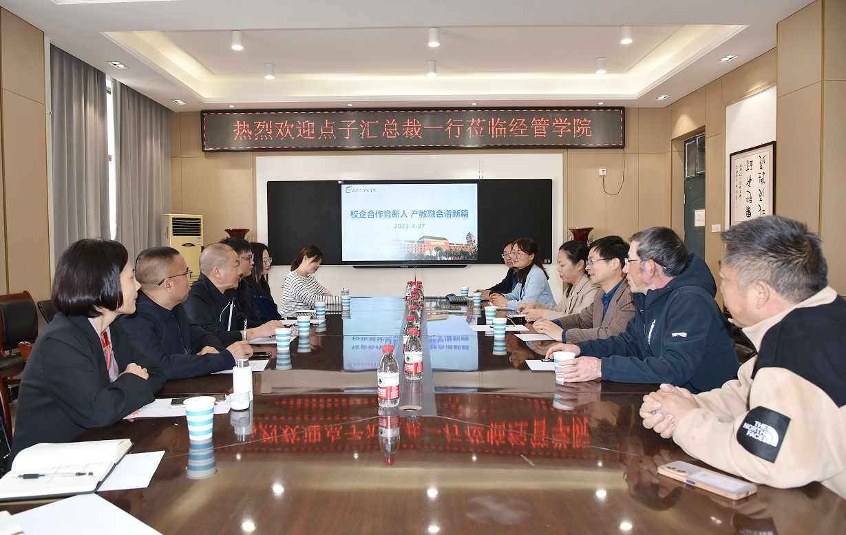 4月27日,河南点子汇文化传媒有限公司董事长、经济与管理学院优秀校友张红凡,合伙人兼校企合作事业部总经理王辉,人力资源总监祝露,校企合作事业部高级业务经理苏淼,游学项目经理雪菲等公司高层一行8人莅临学院考察洽谈。学院党委书记何二毛,副书记吴丹,副院长郎群秀、崔鸽,市场营销教研室主任吴国庆参加洽谈并陪同考察。