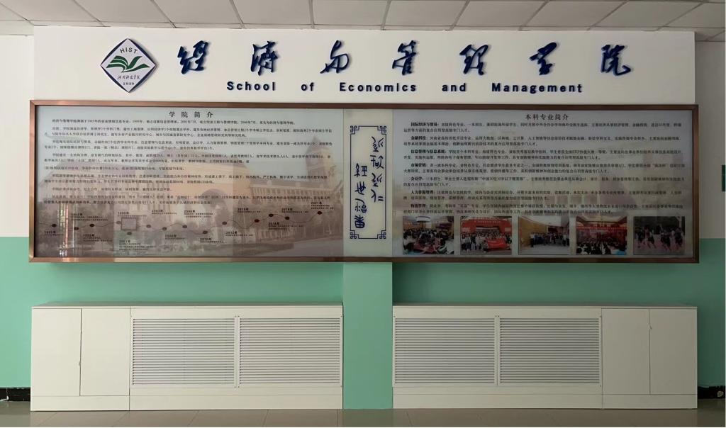 经过半年多的梳理、凝练和提升,完成了学院大厅文化墙内容选取和图样设计,并得到了师生认同和校友支持。经设计师的精心设计和工人师傅的施工安装,9月19日,位于10号教学楼一楼大厅的经管学院文化墙顺利完工。