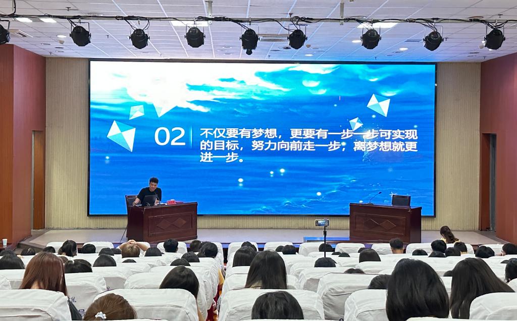9月12日下午,经济与管理学院在图书馆一楼学术报告厅举办优秀校友报告会,580名新生通过线上与线下相结合的形式参加会议。报告会由院党委副书记吴丹主持。