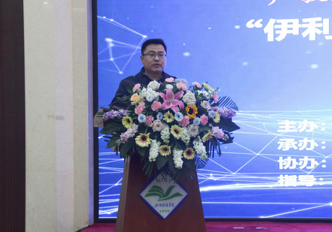 3月13日下午,第二届大学生“双创节”暨“伊利杯”首届大学生商业精英挑战赛开幕式在行政楼308报告厅隆重举行。校党委副书记、工会主席姚刚,新乡市人力资源和社会保障局副局长杨焱、共青团新乡市委副书记贾紫亮出席开幕式。伊利集团、新乡人才集团,中国移动、中国平安、中国人寿、广发银行、中国银联等驻新分公司,新乡新之蒙供应链有限公司、三维圈数科集团、新乡云妹集团、新乡万融连环境科技有限公司等10余家合作企业、校友企业负责人,我校相关部门负责人以及师生代表300余人参加开幕式。