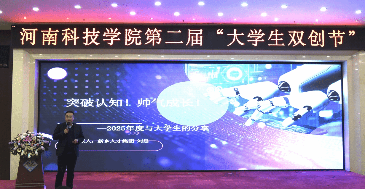 伊利集团河南大区总经理张立杰、新乡市人才集团总经理刘思、三维圈数字科技集团经理郭晓霆三位企业家代表以“自我成长”、“企业文化”“低空经济”为切入点,从企业初创、企业成长、市场开拓、用户运营、企业文化、公司愿景、人才招聘等方面展开阐述和分享,引导同学们既要建构扎实过硬的专业知识理论体系,又要结合新兴职业培养跨界思维、丰富知识、提升能力,成为有梦想、有情怀、敢创新、能创造的复合型人才。
