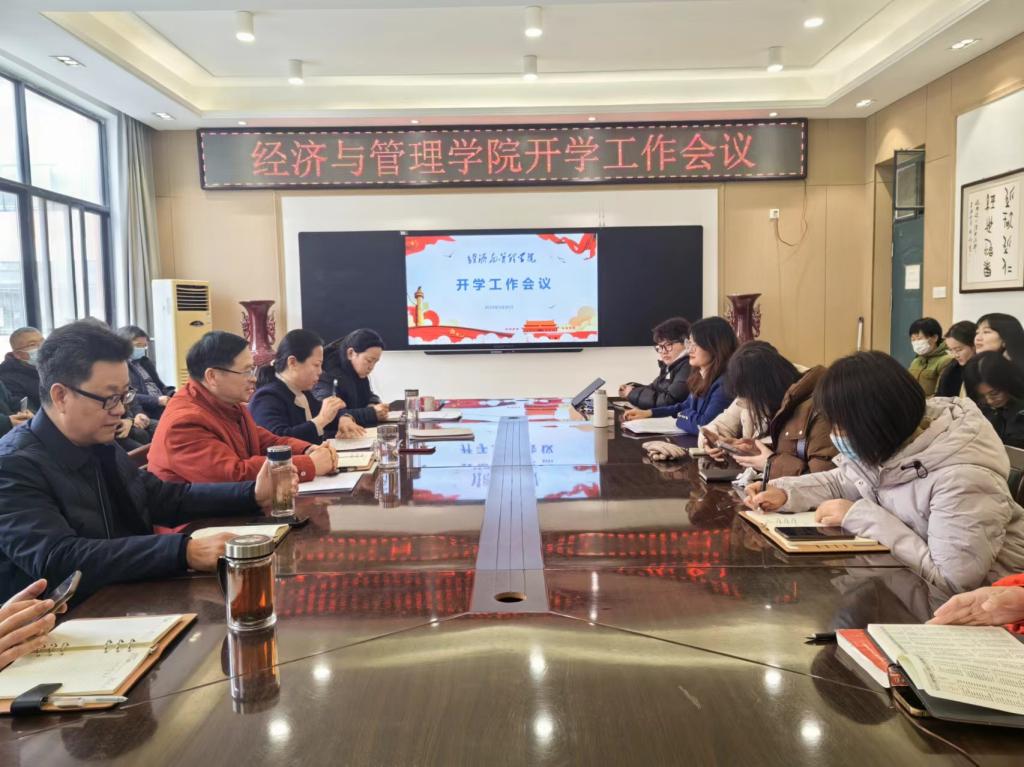 2月25日下午,经济与管理学院在10号楼202会议室召开新学期开学工作会议,学院党政领导班子成员和全体教师参加会议,党委书记何二毛主持会议。