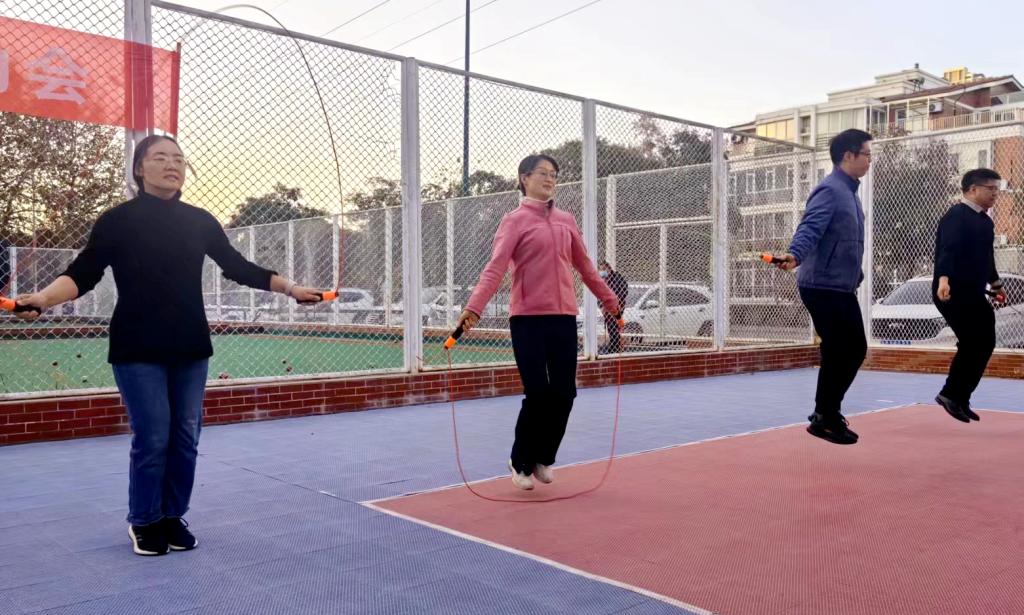 在学院分工会积极筹备和精心组织下,活动设置了“一分钟跳绳”“一分钟踢毽子”“欢乐跳大绳”等项目,现场热情高涨、趣味盎然,助威声、呐喊声、欢笑声此起彼伏,老师们精神饱满、斗志昂扬、相互鼓励,共同挥洒汗水,留下了一道道靓丽的风景。