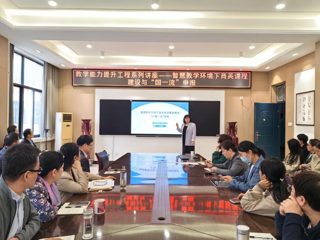10月19日下午,为提升教师课程建设水平,经济与管理学院在10号楼202会议室举办以“一流课程申报与建设”为题的教学能力提升工程讲座。本次活动特别邀请了国家一流课程主持人外国语学院王惠敏老师作专题报告。报告会由副院长陈军民主持,全院60余名教工参加讲座。
