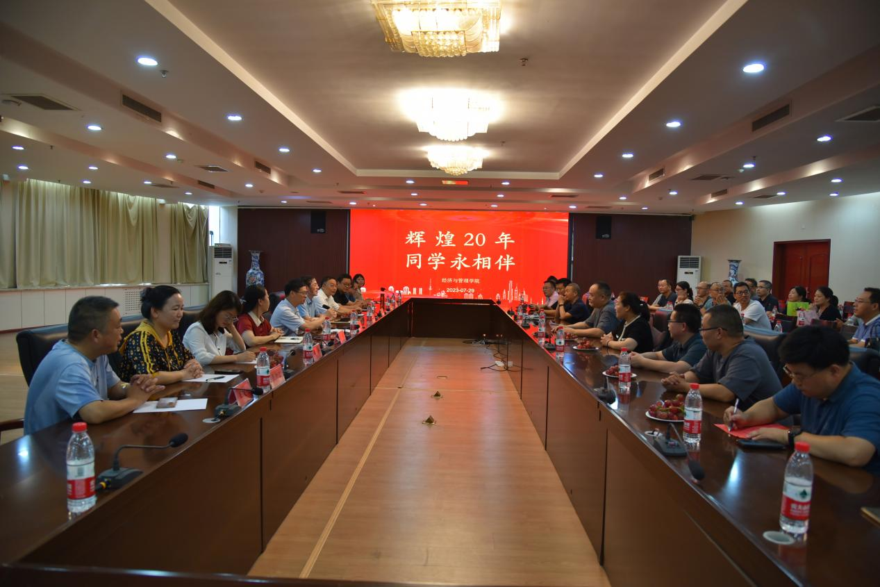 经管学院党委书记何二毛、院长崔鸽代表学院党委、行政及全体师生对校友们返校表示热烈欢迎,对校友们20年来时刻关注、支持学校发展并为学校争得荣誉表示衷心的感谢和崇高的敬意。同时,详细介绍了学校的发展历程、师资情况以及在人才培养、学科发展、科学研究、社会服务、校企合作、产教融合等方面的良好发展态势,希望校友们一如既往的关注、支持母校,并欢迎各位校友常回家看看。班会在轻松愉快的氛围中进行,校友们踊跃发言,互相介绍了各自毕业后拼搏奋斗、成长发展历程,分享了自己的人生感悟。