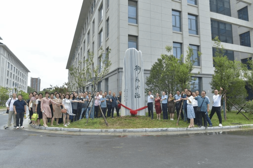 学院师生代表和校友们共同来到学校东校区,为信管99级校友捐赠的景观石揭幕并合影留念。