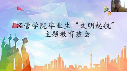 5月25日至26日,经管学院副处级组织员吴丹、各专业辅导员通过钉钉视频连线分别召开以“毕业起航,青春飞翔”为主题的毕业班主题班会。