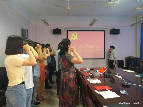 一、共同观看高校战“疫”示范“七一”专题微党课。微党课回顾了中国人民大学、复旦大学、西安交通大学、北京科技大学四所高校自新冠疫情爆发以来,在疫情中贯彻落实党中央部署和抗疫工作的开展情况,以及抗疫一线的英雄故事。大家观看微党课后纷纷表示,“一个党员就是一面旗帜。作为一名党员教师,将继续发挥好先锋模范作用,立足本职工作,以实际行动助力打赢疫情防控阻击战。”
