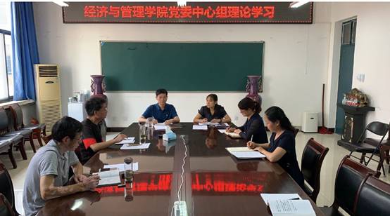 7月8日,经济与管理学院党委在十号楼202会议室举行中心组理论学习会。院领导何二毛、闫秀敏、郎群秀、张宏军、崔鸽、吴丹参加学习会。党委书记何二毛主持。
