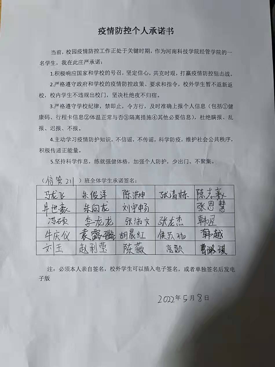 主题班会结束后,各班级组织学生签订了疫情防控承诺书,学院辅导员深入学生宿舍进行了走访交流,进一步巩固了“疫情防控及警示教育”主题班会的成效。