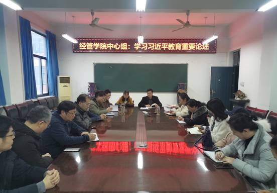 12月22日下午,经济与管理学院在10号楼202会议室召开党委中心组学习扩大会议,专题学习习近平总书记关于教育的重要论述。学院班子成员、科级及以上干部参加会议。会议由党委书记何二毛主持。