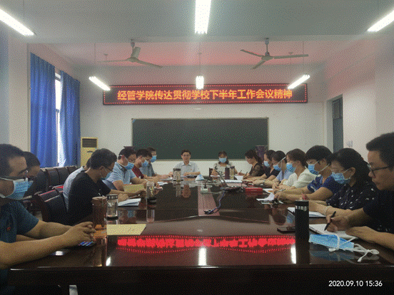 9月10日下午,经济与管理学院在10号楼202会议室召开会议,传达贯彻学校下半年工作会议精神。学院班子成员、支部书记、科级以上干部及全体辅导员参加会议。