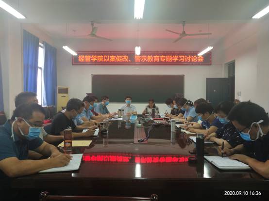 9月10日下午,在10#202会议室,经济与管理学院召开党委中心组(扩大)“以案促改、警示教育”专题学习讨论会。学院班子成员、支部书记、科级以上干部及全体辅导员参加会议。学院党委书记何二毛主持会议。会议分四个步骤进行。