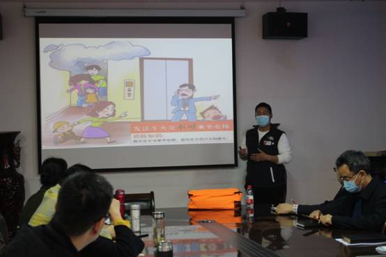 会议邀请河南省消防协会的苏阳教官为大家做了报告。苏教官讲解了基本消防安全制度和相关的法律法规,并结合现实案例,对消防安全知识、存在的安全隐患和错误的救火灭火方法、自救与逃生技巧等方面为大家上了一堂生动的安全教育警示课。