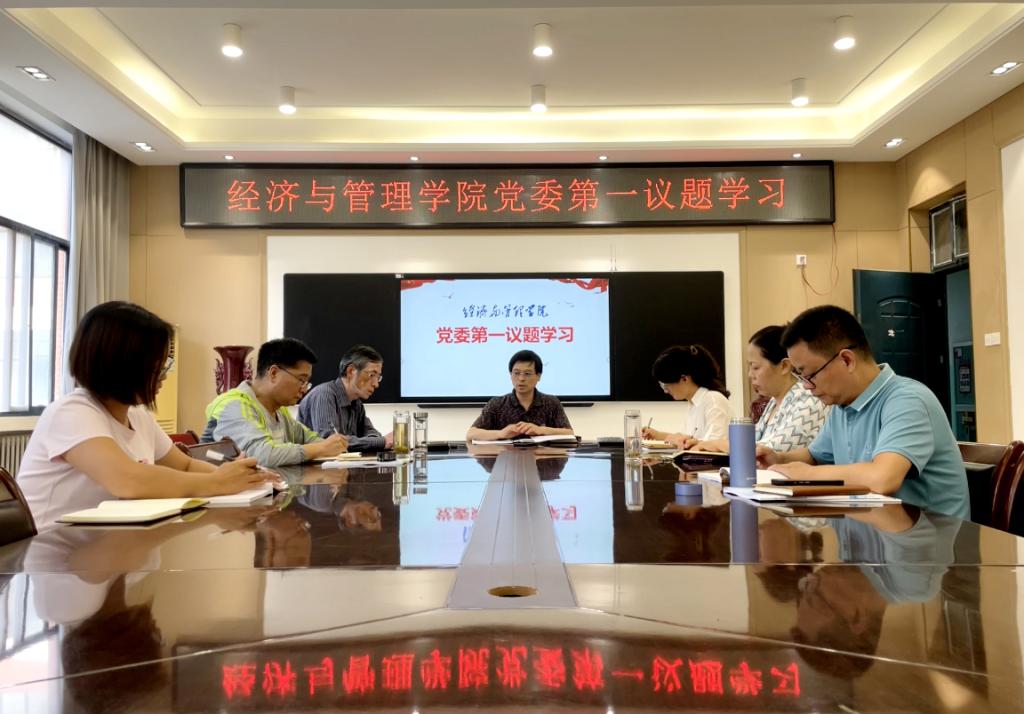 根据学校《党委(党总支)“第一议题”制度》(校党字[2022]43号)通知要求,8月31日,经济与管理学院在10号教学楼202会议室召开党委会,组织开展“第一议题”学习活动。学院党委书记何二毛主持会议,党委委员参加学习。