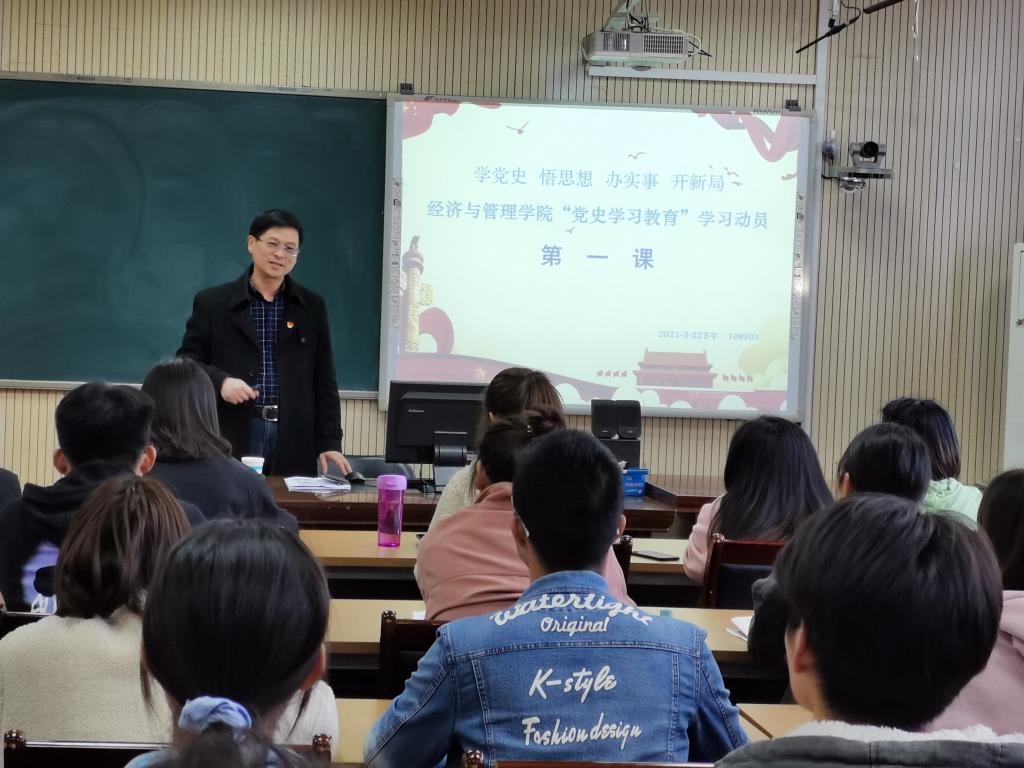 为引领广大青年学生学史明理、学史增信、学史崇德、学史力行,以奋进姿态开启学期新征程,以优异成绩迎接建党100周年,3月22日下午,在10号楼501教室,学院党委书记何二毛讲授党史学习教育“第一课”,我院学生党员、学生干部代表50余人聆听了这堂专题思政课。