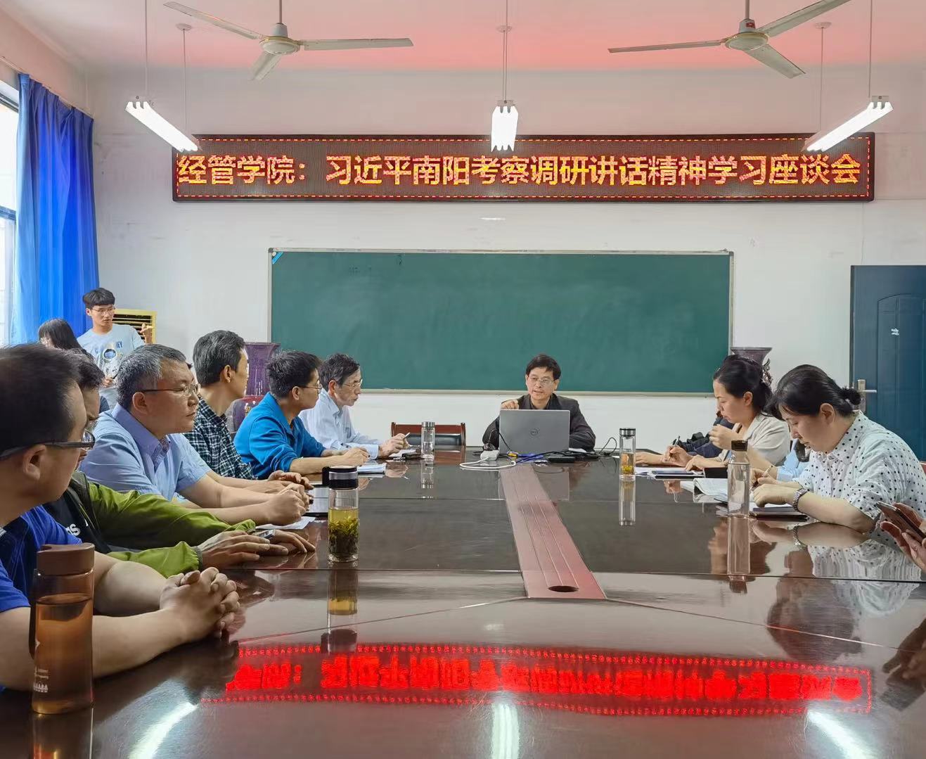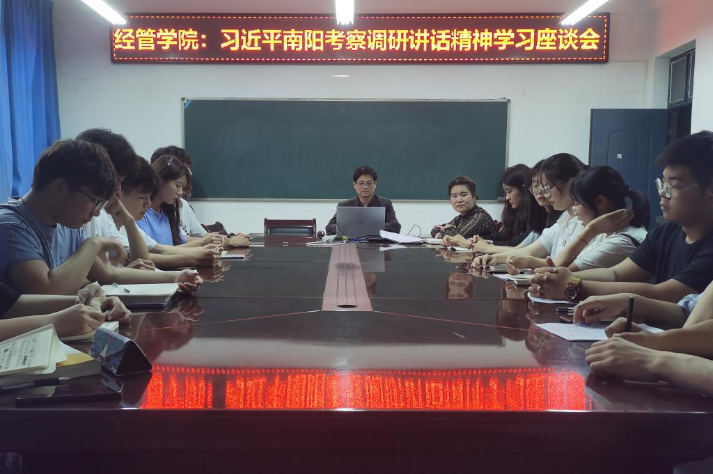 5月20日下午,经济与管理学院在10号楼202会议室分别召开学生座谈会和教师座谈会,集中学习习近平总书记在南阳考察调研时的重要讲话精神。学院党委书记何二毛,副书记吴丹,副院长郎群秀、崔鸽、张宏军,以及教师及学生代表参加会议,会议由何二毛主持。