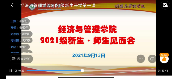 金秋凉风至,喜迎新生来。9月13日上午,经济与管理学院通过线上线下相结合的方式举办2021级新生师生见面会。会议由党委副书记吴丹主持。