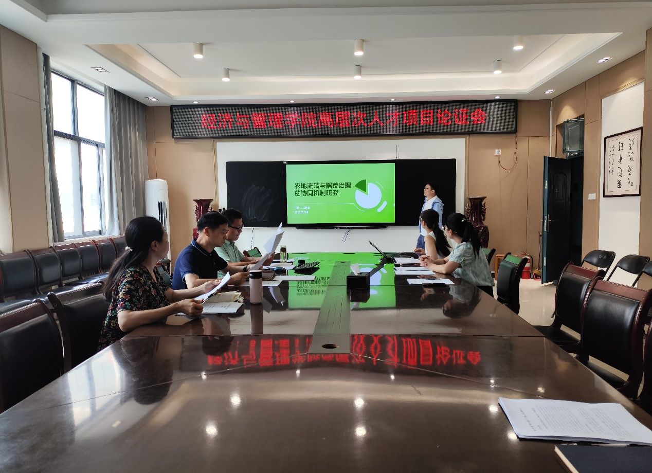 7月10日下午,经济与管理学院在10号楼202会议室召开高层次人才科研启动项目论证会。学院党委书记何二毛、执行院长崔鸽、副院长陈军民等专家及教师代表参会,会议由副院长陈军民主持。