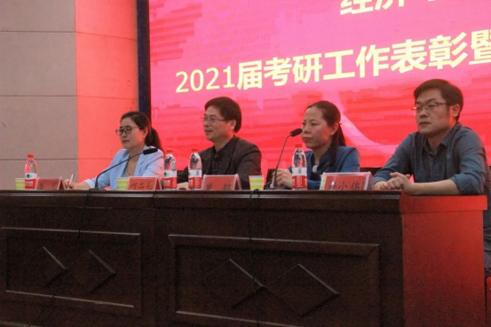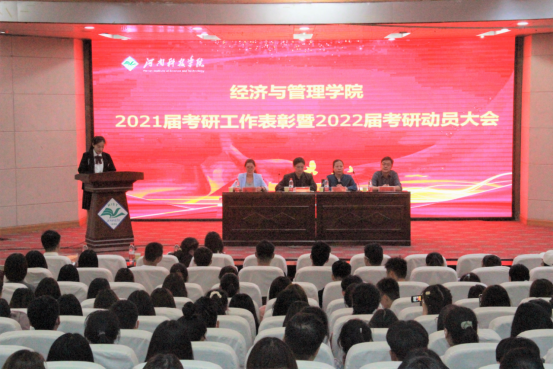 5月17日晚上,经济与管理学院于图教201召开2021届考研表彰大会暨2022届考研动员会。党委书记何二毛、副院长崔鸽、研究生秘书杜小伟、团委书记李可、全体辅导员、2021届优秀毕业生及200余名学生代表参加会议。