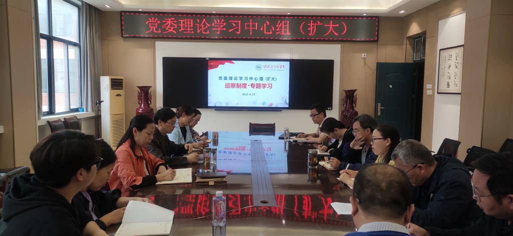 9月27日下午,经济与管理学院党委理论学习中心组(扩大)学习会在10号楼202会议室召开,学院党委理论学习中心组成员、各党支部书记、教研室主任参加会议。会议由院党委书记何二毛主持。