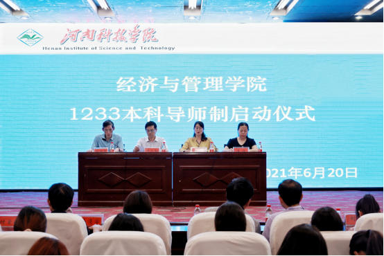 6月20日下午,经管学院在图教201举行“1233本科导师制”启动仪式。学院党委书记何二毛,副书记吴丹,副院长郎群秀、崔鸽,导师代表,全体辅导员及300余名学生代表参加。启动仪式由郎群秀主持。