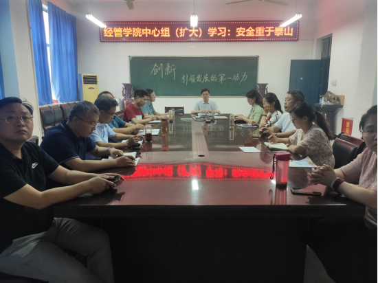 6月17日下午,经管学院在10号楼202召开党委中心组学习(扩大)会议,专题学习习近平总书记关于安全生产的重要论述。学院领导班子成员、科级及以上干部参加会议。会议由党委书记何二毛主持。